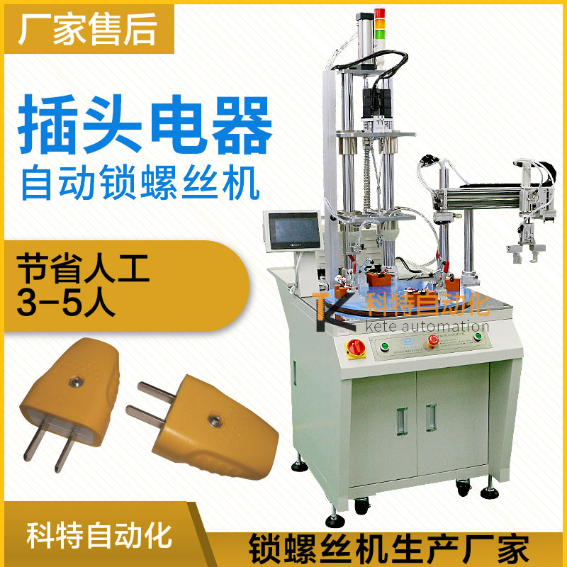 電源插頭作為一種日常用品,在生活中被廣泛使用。因此它的使用安全性也越來越引起人們的重視。現在常用的電源插頭由于為了便于插腳能順利的插入到插座的插孔中,一般是插座的插孔的內徑大于插腳的外徑并且插孔的絕緣上蓋上設置有倒角。但是這種結構也帶來了安全隱患。因為在插孔的絕緣上蓋處,插腳與插孔的內壁之間存在著一定的縫隙,在插頭的插拔過程中,很容易從縫隙中帶入雜質,引起短路,更危險的是,小孩有可能將手指伸入到縫隙中,有著觸電的危險,在生產中需要螺絲來緊固內部的螺絲,傳統手工放置螺絲和對準螺絲頭部仍需要占用大量的工作時間和精力,因此整體效率提升比較低,有而且很容易滑牙擰不緊等問題造成產品質量差,廠家會考慮到電動螺絲刀或者氣動螺絲刀擰緊兩種,后者通過電動或者氣動的方式產生旋轉動力,以代替頻繁手工的擰緊動作,雖然在生產上堅強了勞動的強度,但仍然存在生產效率得不到提升。