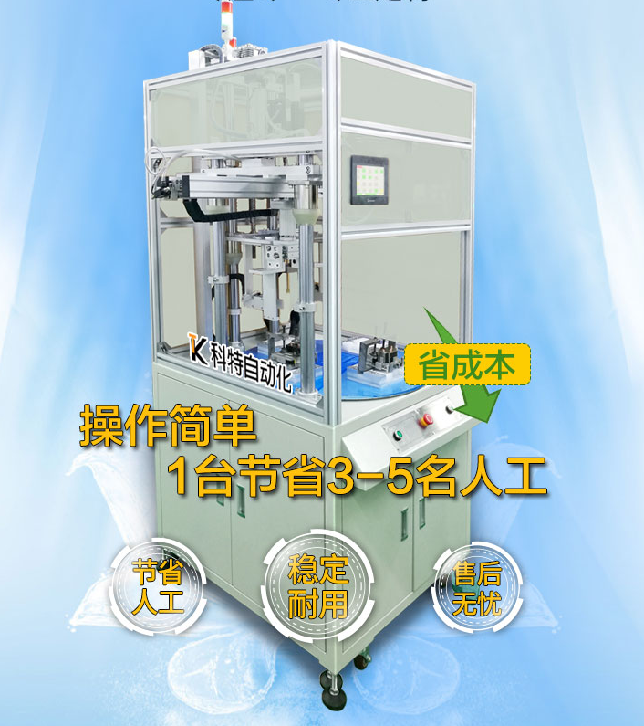 最后是鎖付機構,鎖付機構主要由電動螺絲刀、刀 頭、伸縮機構、夾咀或套筒組成,將螺絲供料器送過來的螺絲對準螺絲鎖付孔位,控制電動螺絲刀下壓,電動螺絲刀有下壓啟動功能,螺絲接觸到螺絲孔自動啟動電批,達到鎖付扭力后,自動停止,完成螺絲的鎖付。
